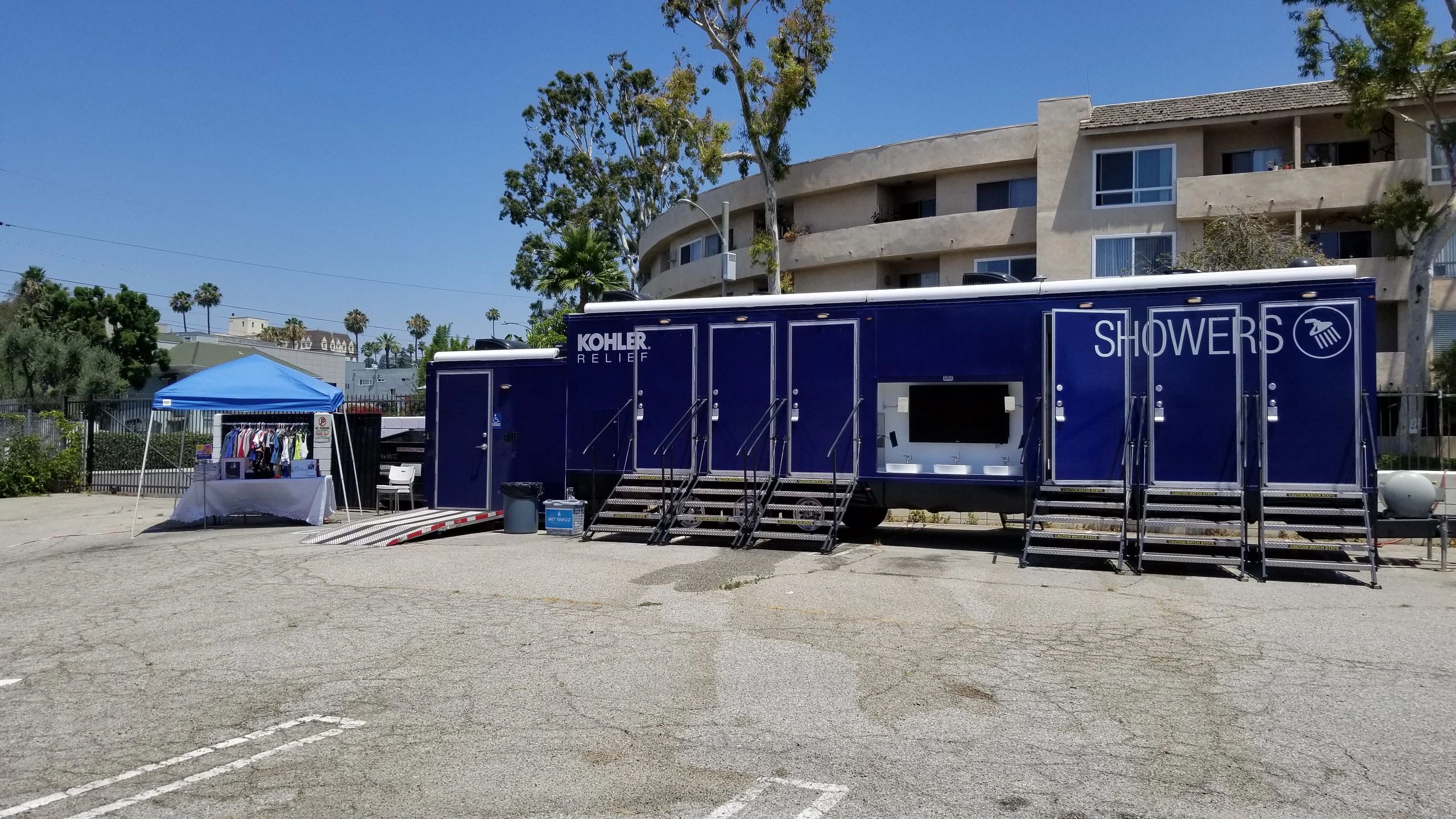 Showers are located in our shower trailer in the Hollywood Adventist Church parking lot.